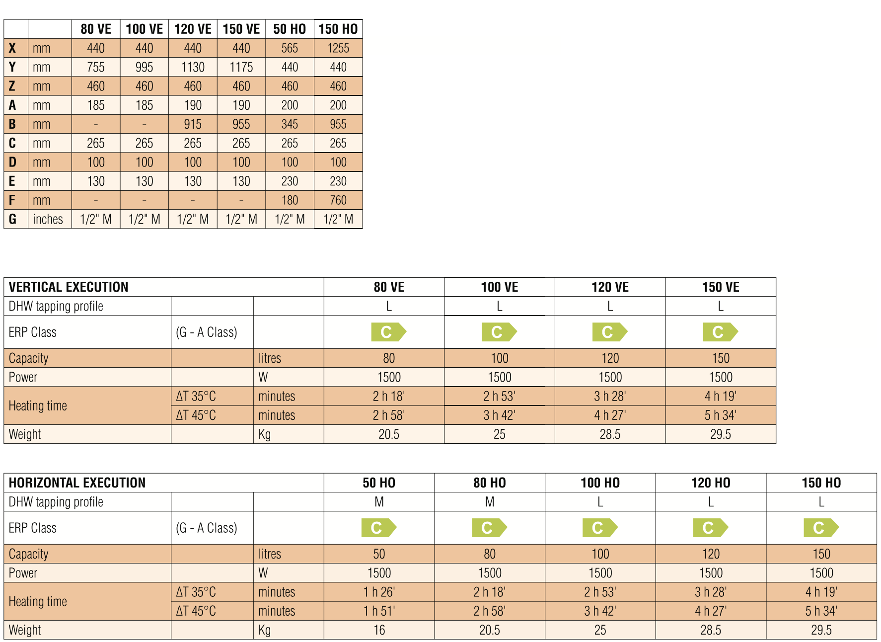Объем серии варьируется от 50 до 150 литров
